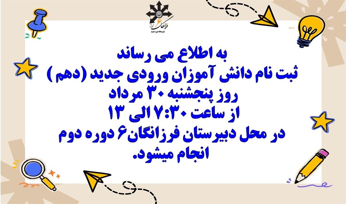 اطلاعیه مهم (ویژه دانش آموزان ورودی جدید پایه دهم)