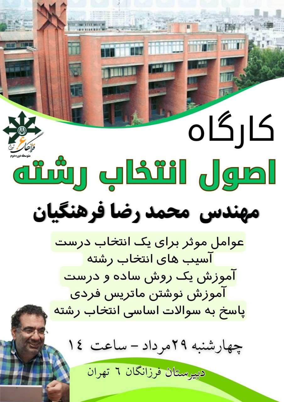 برگزاری کارگاه اصول انتخاب رشته با جناب آقای مهندس فرهنگیان 29 مرداد