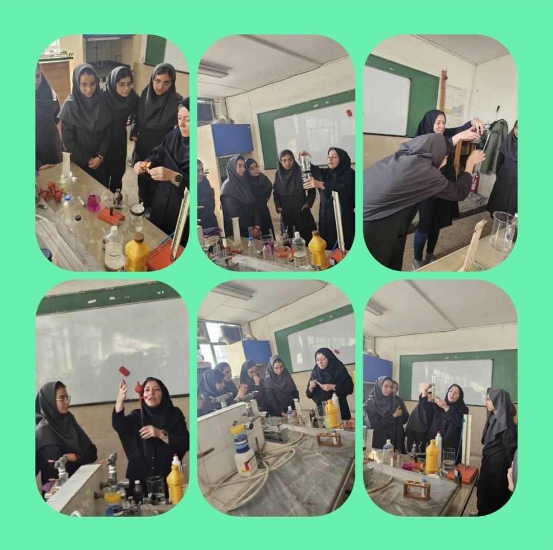شور و شوق دانش آموزان دبیرستان فرزانگان ۶ دوره دوم با حضور در آزمایشگاه و انجام آزمایشهای مهیج